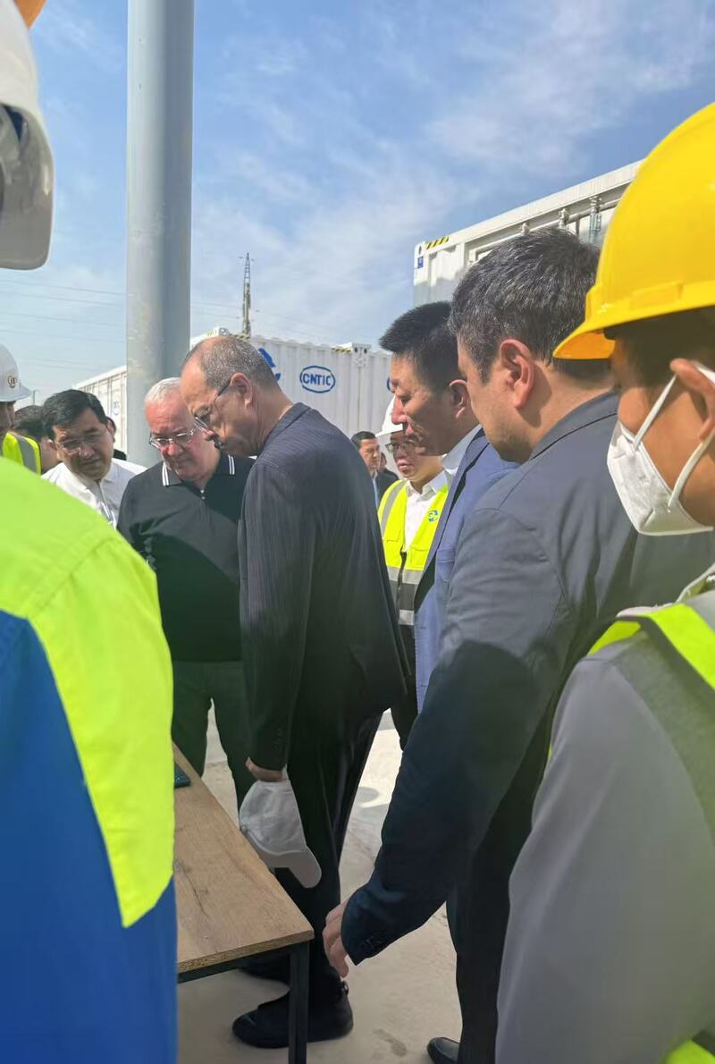 9月11日上午,乌兹别克斯坦国家总理阿里波夫视察乌兹100MW燃气热电联供项目现场。通用技术中亚片区负责人汇报公司在乌兹市场总体发展,以及该项目情况和进展。视察期间,阿里波夫一行先后参观了项目施工区域和办公场地,高度赞扬项目建设取得的显著进展,同时对项目执行团队以及当地合作伙伴所展现出的专业素养和合作氛围表示充分肯定。他强调,项目是中乌合作的标志性工程,也是提升乌兹别克斯坦电力、热力产能和能源可靠性的重要支柱,对保障国家电力、热力供应、促进地区经济发展、带动社会劳动就业具有重大意义,工程现场所展现的优良施工组织、高标准安全质量管理令人印象深刻,希望项目参建各方共同努力,保证工程按期优质投产。乌兹别克斯坦能源部、塔什干市政府、乌兹别克斯坦热电公司、塔什干热力中心有限公司代表陪同参加。